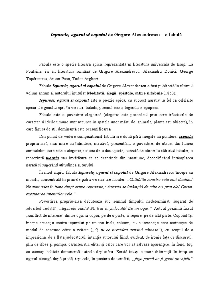 Iepurele Ogarul și Copoiul Fabulă De Grigore Alexandrescu Gokid