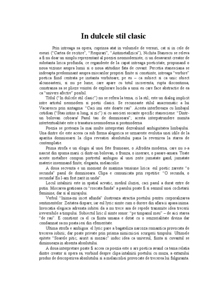 In Dulcele Stil Clasic By Nichita Stănescu 1 Star Ratings