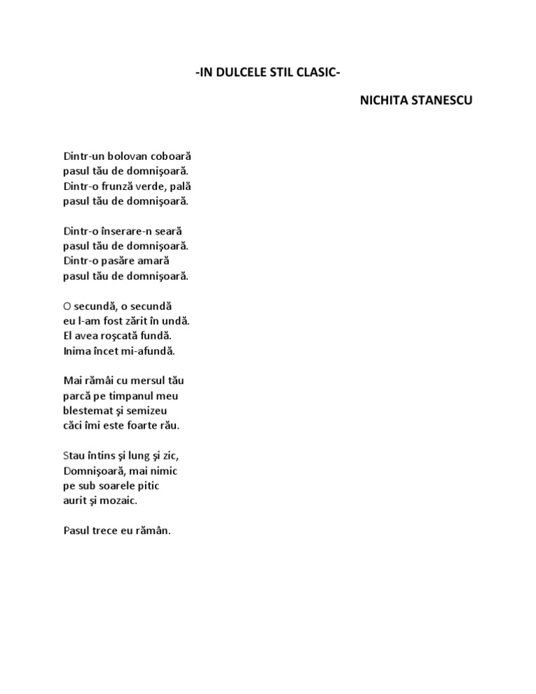 In Dulcele Stil Clasic Nichita Stănescu Colectionara De Carti