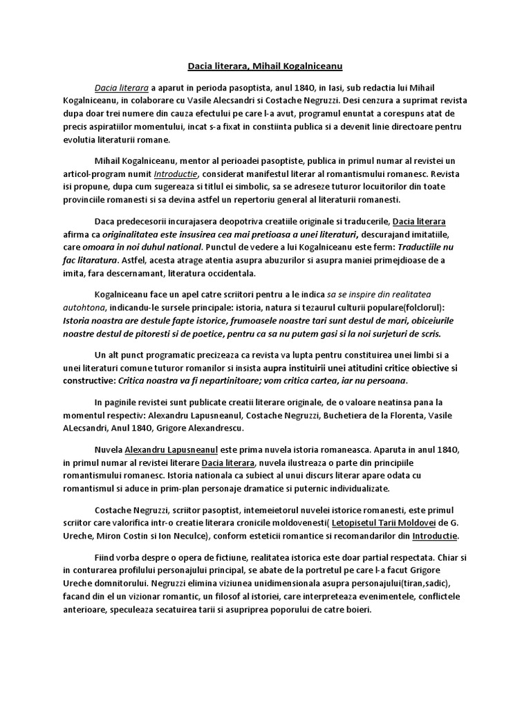 Introductie De Mihail Kogalniceanu Dacia Literara