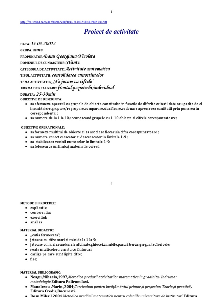 Proiect Activitate Matematica Pedagogie 379609 Regielive