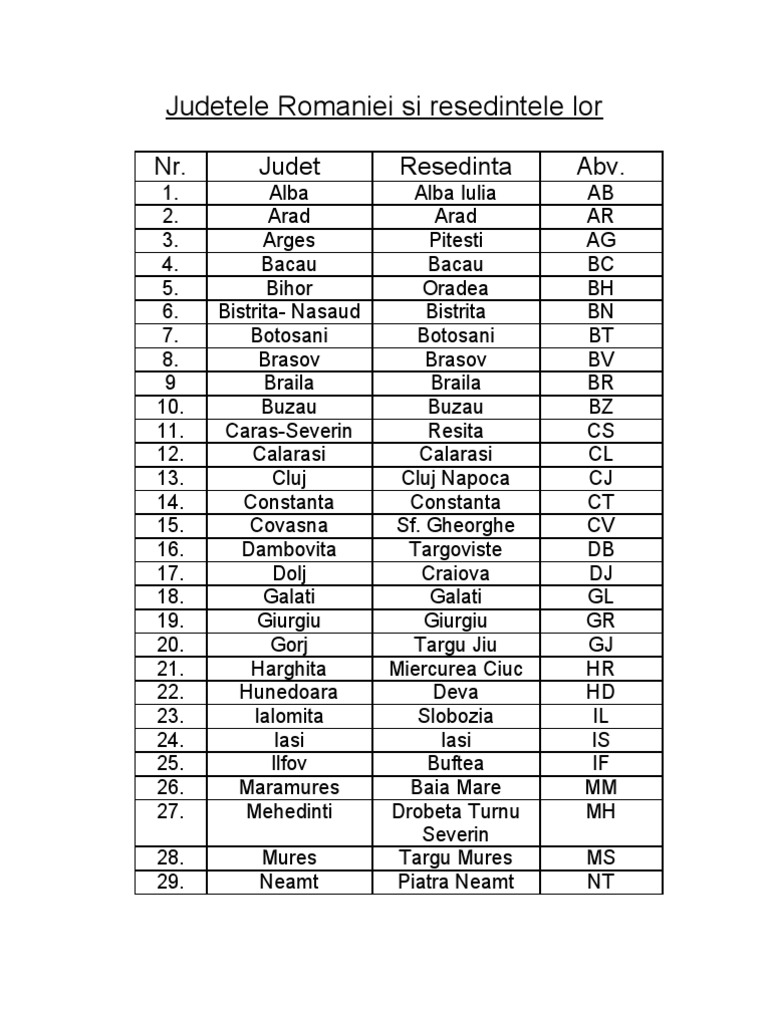 Scrieti In Ordine Alfabetica Judetele Romaniei Si Resedintele Lor Apoi Impartiti Le Pe Cele Trei Brainly Ro