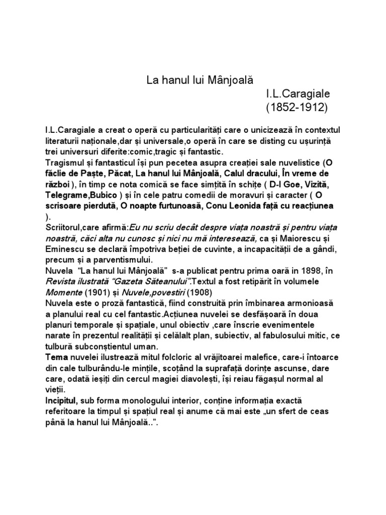 Http Ltcaracuseniivechi Educ Md Wp Content Uploads Sites 412 2017 11 Caragiale Luca Ion La Hanul Lui Manjoala Cartea Pdf
