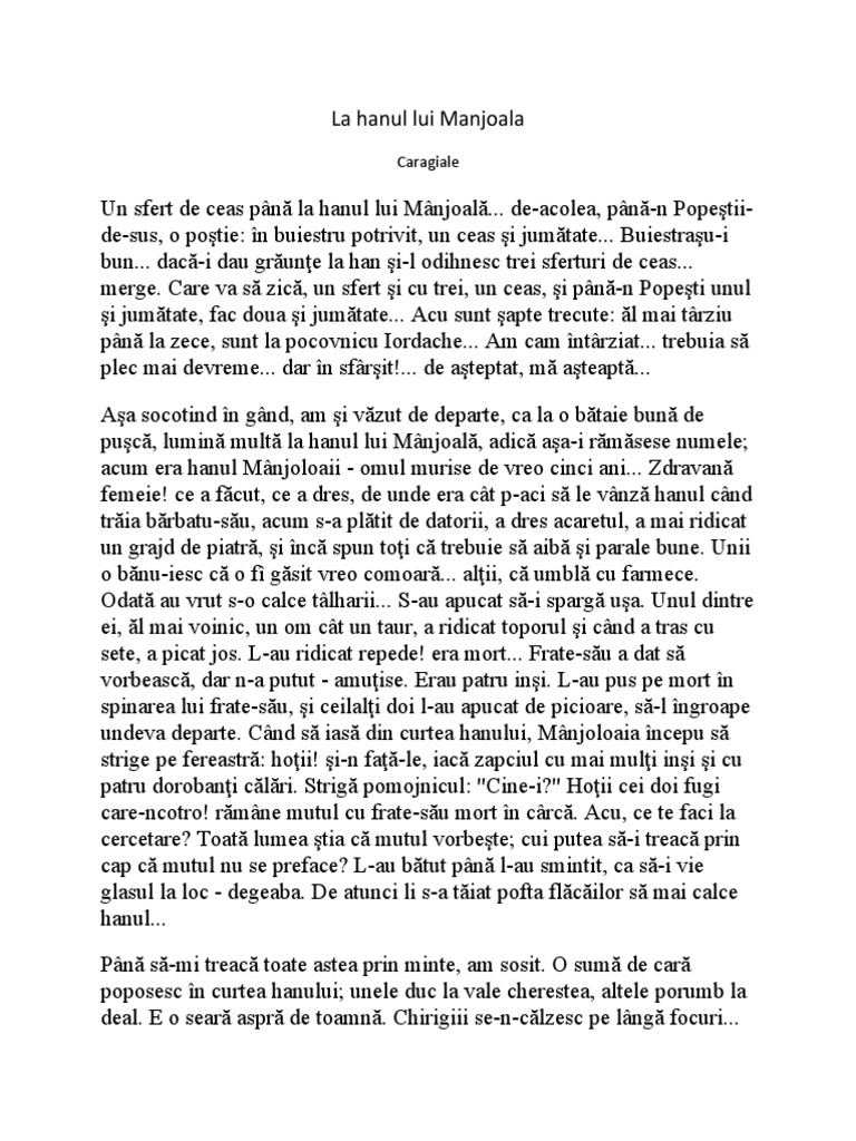 La Hanul Lui Manjoala La Hanul Lui Manjoala De I L Caragiale Wattpad