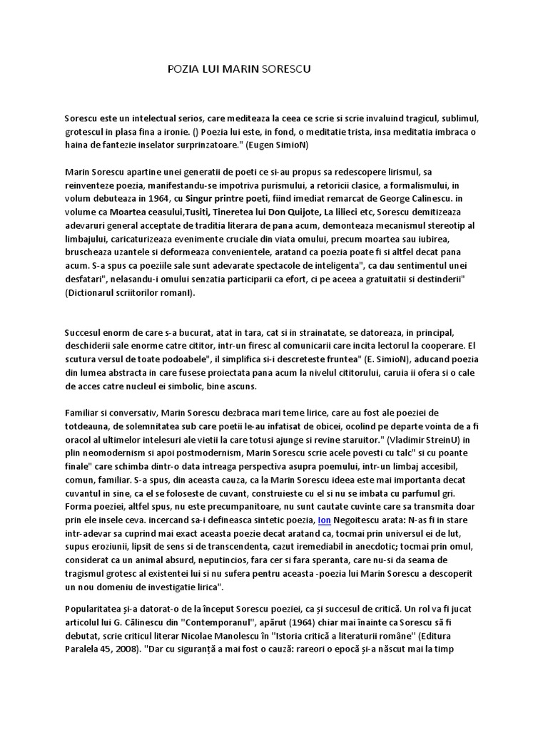 Poezia Lui Marin Sorescu Docx