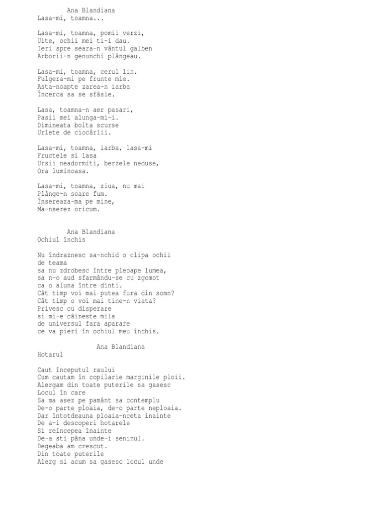 Ana Blandiana Lasa Mi Toamna Ochiul Inchis Hotarul