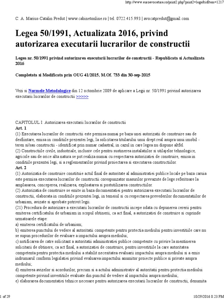 Legea Nr 50 1991 Actualizata 2016