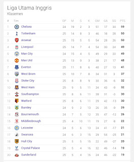 Bola Jawara Liga Inggris 2016 2017 Klasemen Hingga Match Tadi Malam